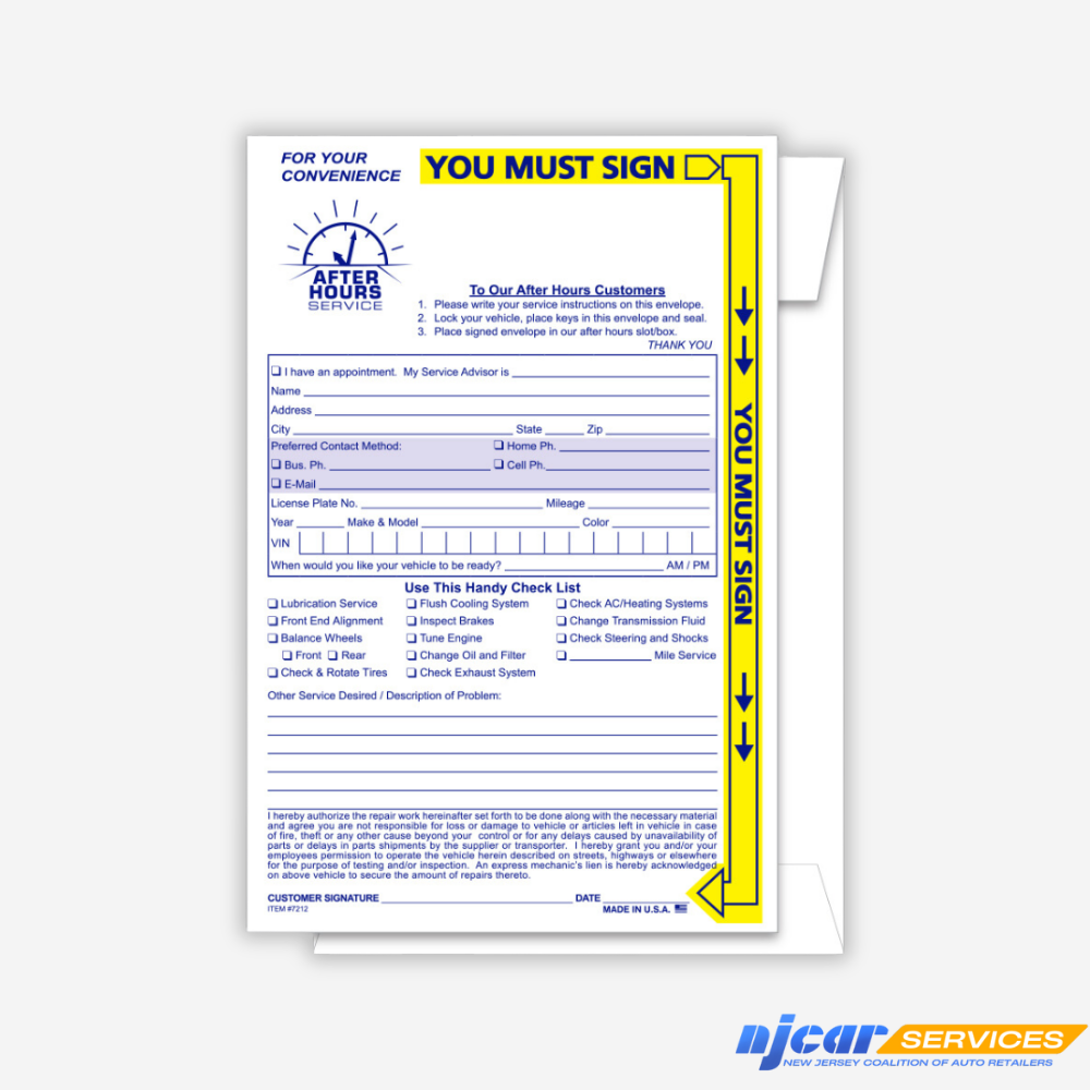 These high-visibility envelopes are ideal for after-hours service drop-offs. Bright yellow and blue ink make instructions stand out for customers.